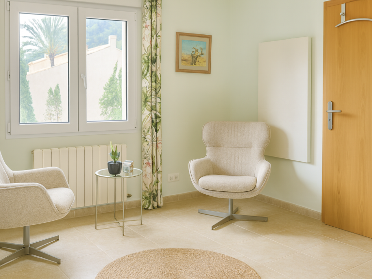 Ich freue mich sehr, Sie in meinen Räumlichkeiten in Moraira begrüßen zu dürfen. Die Praxis bietet den idealen Rahmen für unsere therapeutische Arbeit: In ruhiger, diskreter Lage finden Sie ein geschütztes und vertrauensvolles Umfeld.